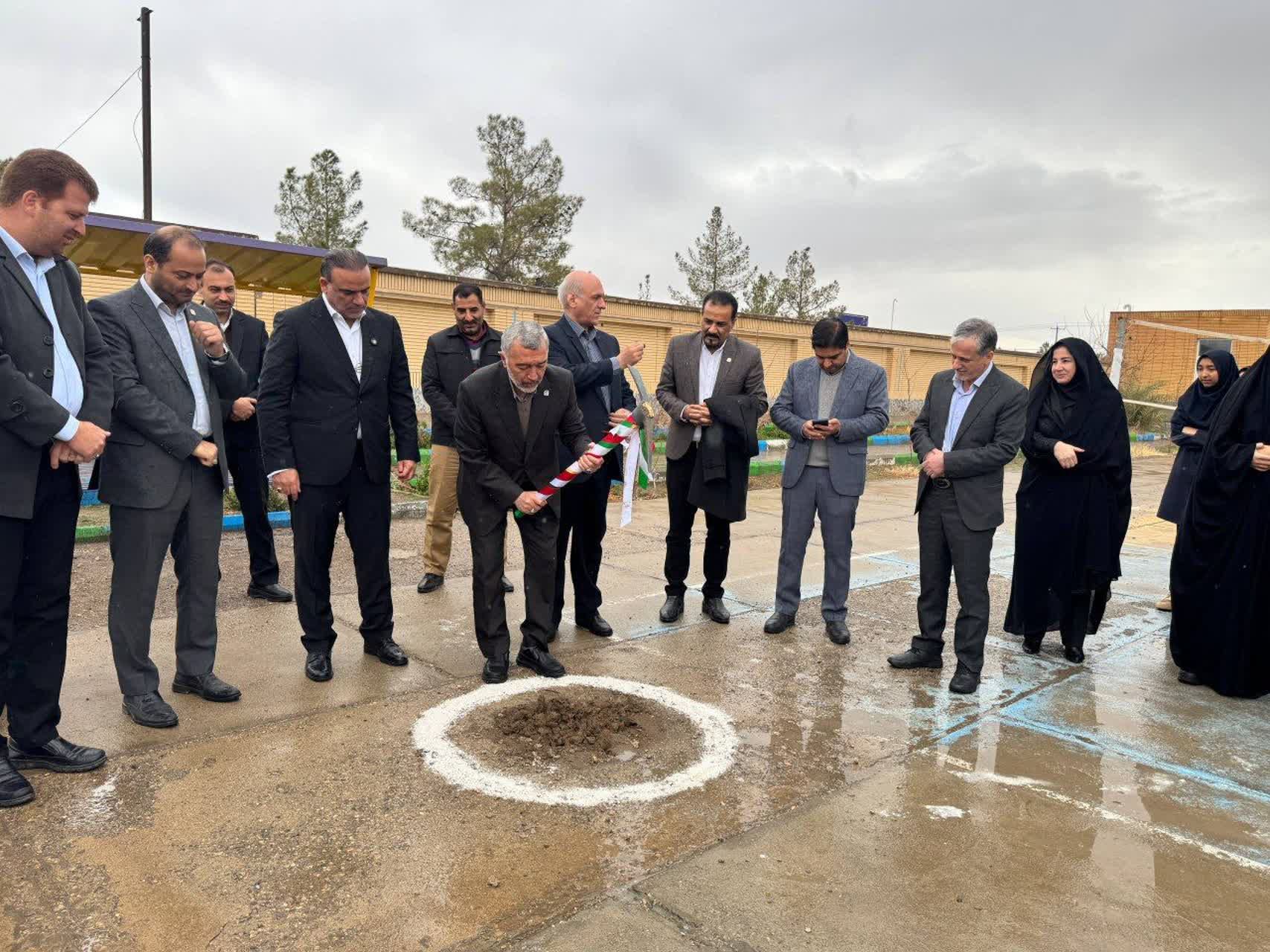 مراسم کلنگ زنی با حضور مقامات جهت اختصاص سالن ورزشی در آموزشگاه * 20 بهمن*