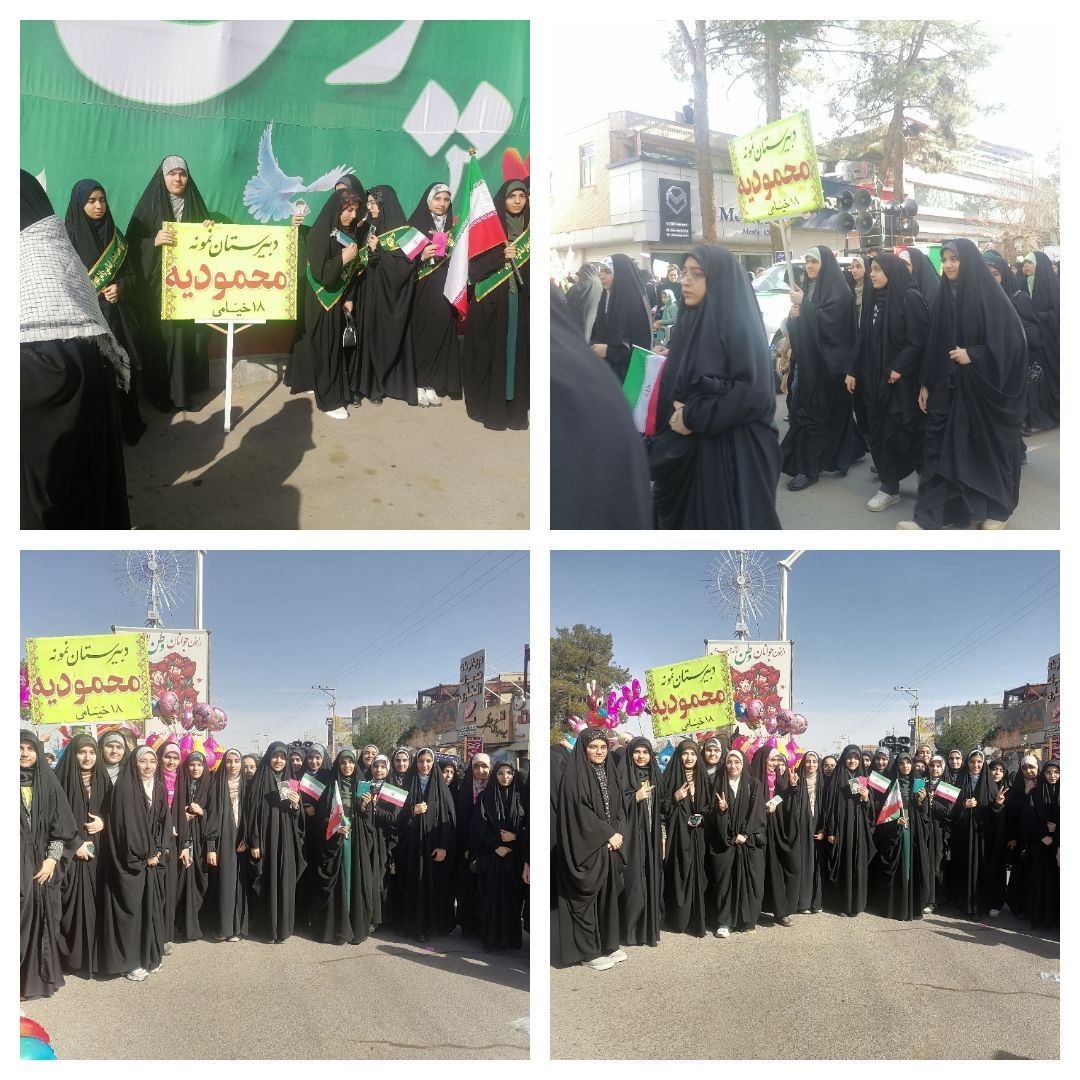 شرکت دانش آموزان و دبیران در راهپیمایی 22 بهمن
